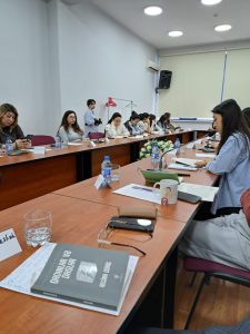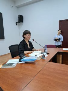 Regina Bakıda nəşr edilən romanının ilk tərcümə olduğunu deyib, əsərin hansı zərurətdən yaranmasından danışıb. Qısa müddətdə çox səmimi ortam yaradan qonaq tələbələrdən romandan parçalar oxunmasını xahiş edib, əsərin dilimizdə necə səsləndiyini dinləmək istəyib, onları maraqlandıran suallara cavab verib. Onun təklifi ilə görüş iştirakçıları tərəfindən daş, yaddaş, “kitab olsam hansı məzmunda olmaq istəyərdim?” mövzularında mətnlər yazılıb, oxunulub.